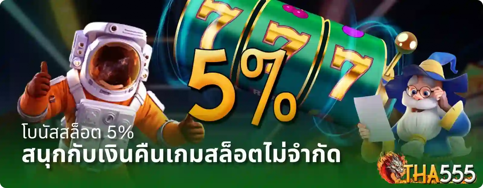 ที่ THA555 เรายังมีโปรโมชั่นพิเศษสำหรับสมาชิกประจำ อย่างโบนัสคืนยอดเสีย 10% ทุกสัปดาห์ เพื่อให้คุณมีโอกาสกลับมาสนุกกับการเดิมพันได้อีกครั้ง และโบนัสเติมเงิน 5% ทุกครั้งที่ฝากเงินเพิ่ม ไม่ว่าคุณจะชนะหรือแพ้ เราก็พร้อมดูแลคุณเสมอ